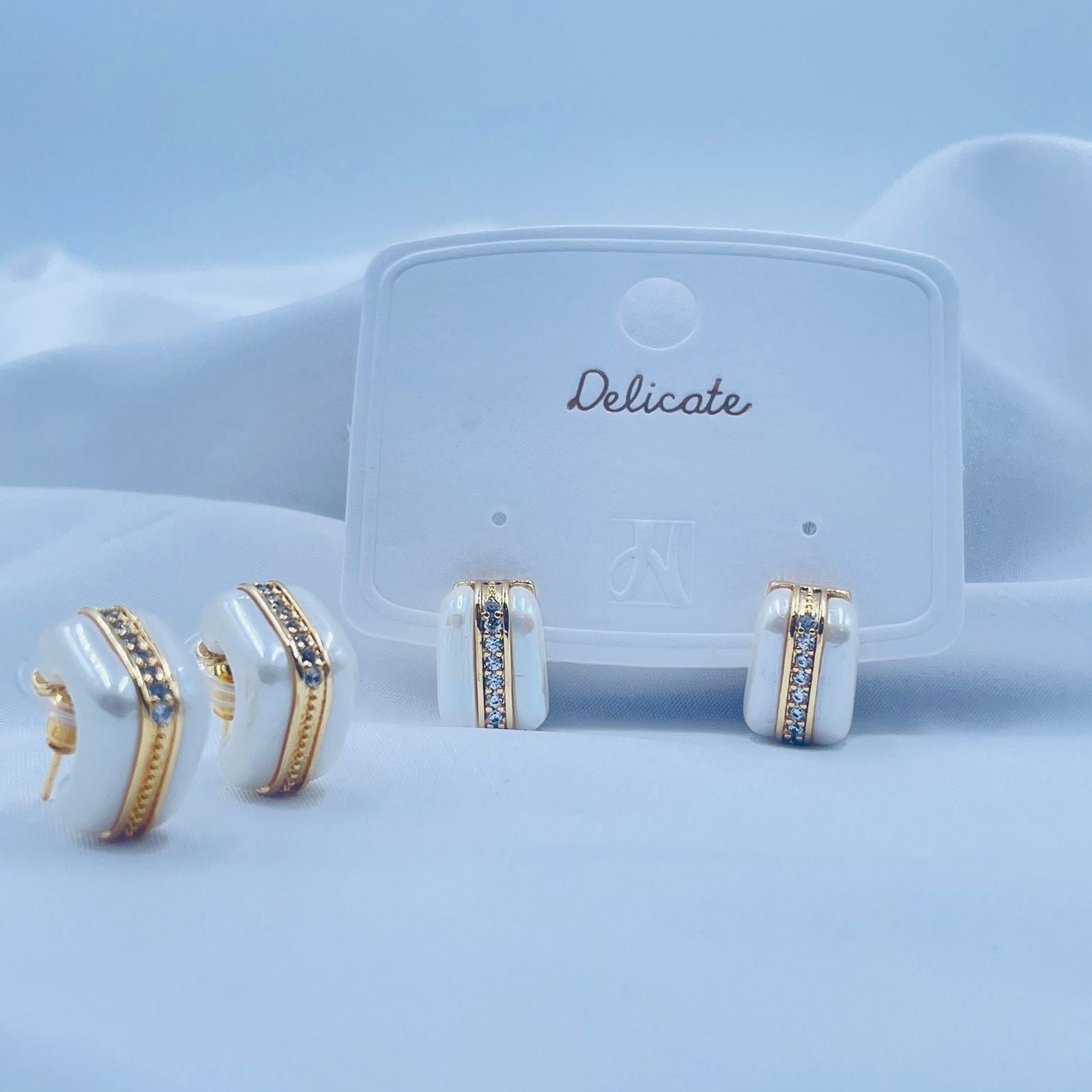 Gold And White Hoop Earrings